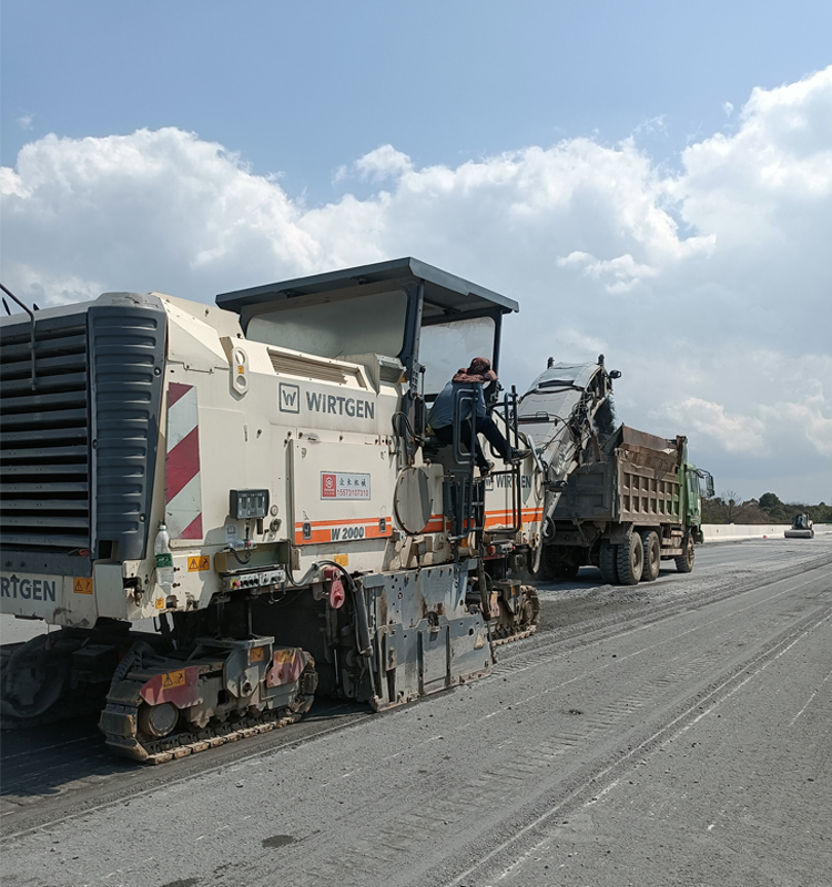 路面銑刨 :通俗說就是把損壞的舊路面刮一層,再鋪新面層。一般為的是消除舊路面破壞松散部分,或為了新舊面的結(jié)合良好。還有,為了提高路